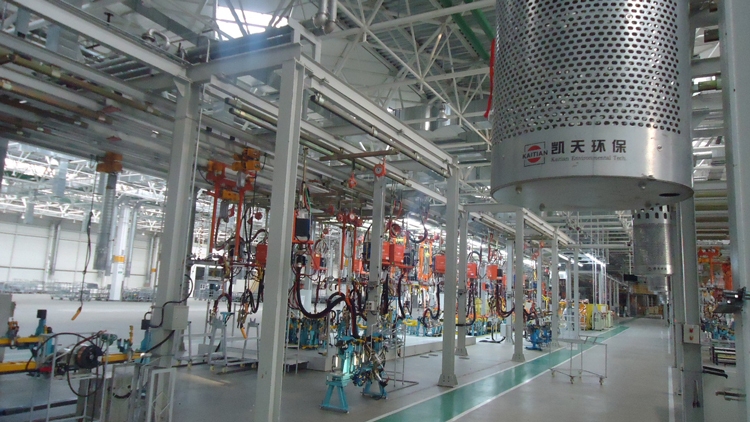 一汽吉林汽車有限公司是一汽小型汽車的主要生産基地,其白車身焊接車間、總裝車間存在異味大、煙塵重、冬季溫度低等一系列問題,航天航天凱天整體廠房控溫除塵技術很好地解決瞭(le)這些問題。並(bìng)且採用整體廠房冬季供暖模式替代瞭(le)傳統的採暖器,室内升溫更快採暖費用降低瞭(le)30%以上。航天凱天環保在汽車制造領域成功實施瞭(le)超過100個治理工程,涵蓋一汽、二汽、上汽、廣汽、長城等衆多汽車制造企業。
