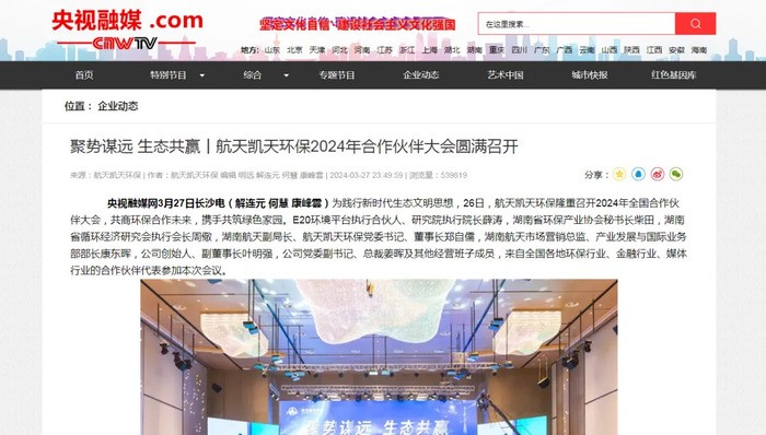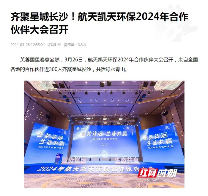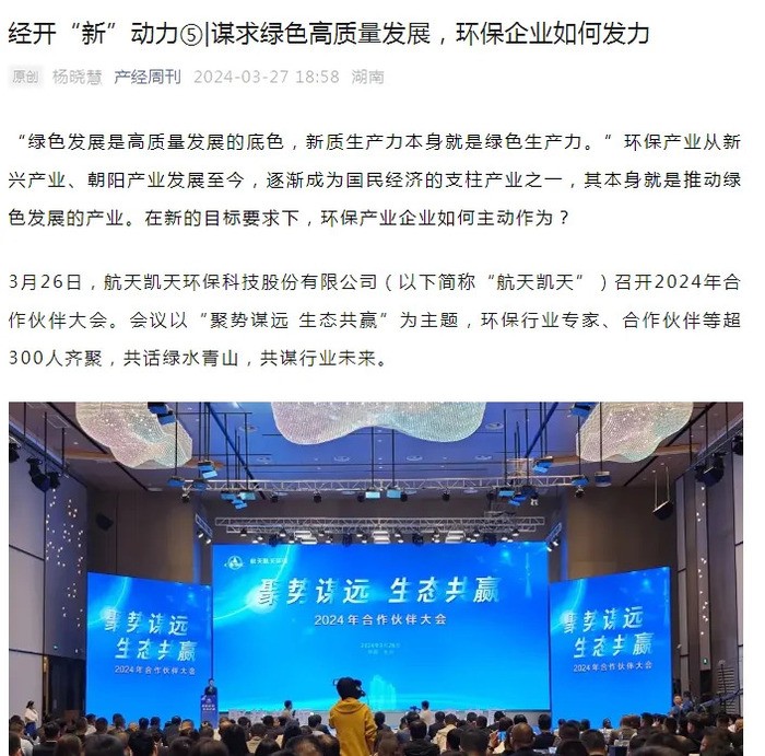 3月26日,航天凱天環保在星城長沙隆重召開瞭(le)2024年合作夥伴大會。此次大會吸引瞭(le)來自全國各地的環保領域合作夥伴,共同探讨綠色發展與生态文明建設的新策略,受到瞭(le)衆多媒體的廣泛關注和報(bào)道。